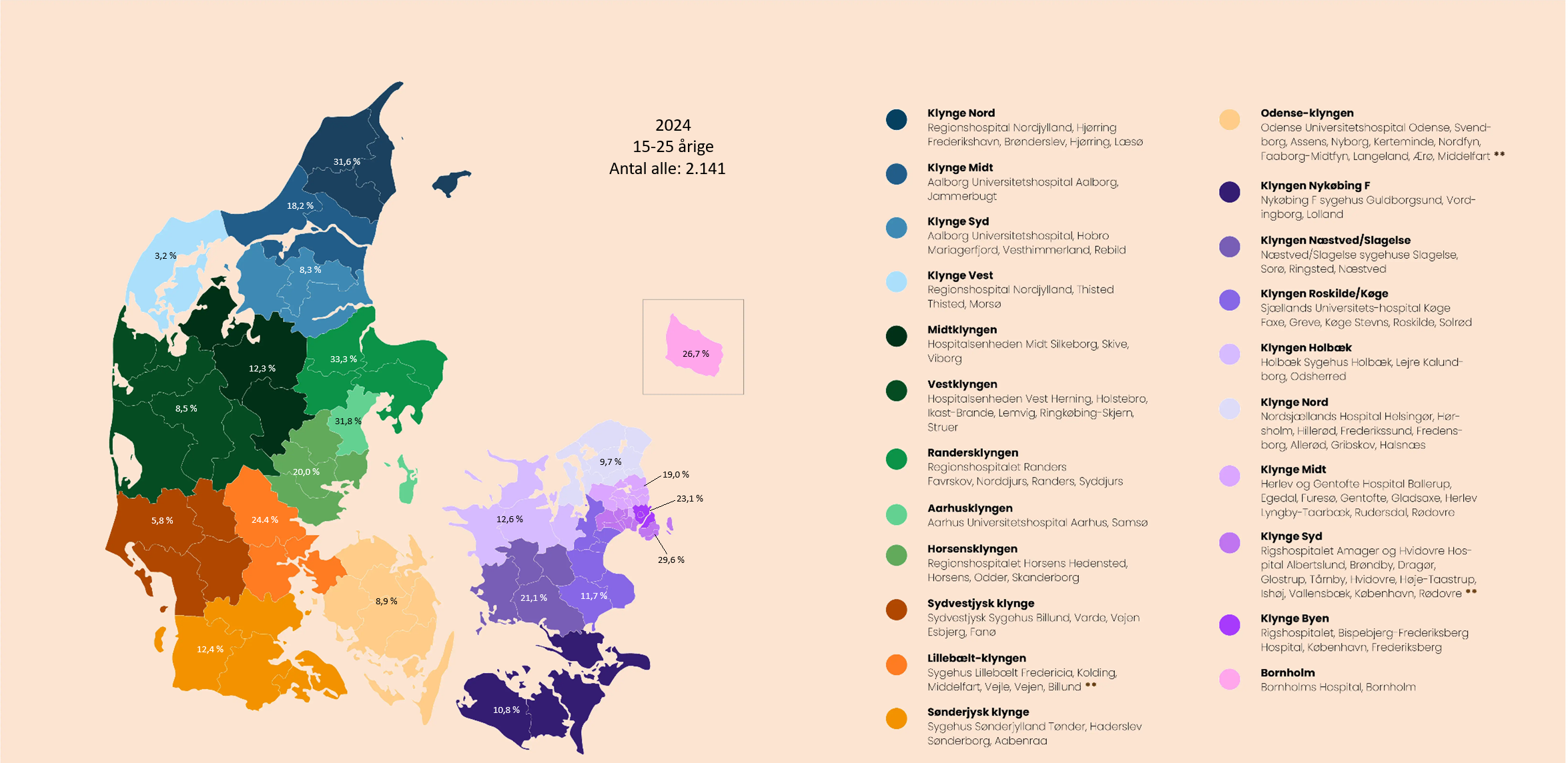 Data til udarbejdelse af oversigter om opioidforbrug fordelt på sundhedsklynger kommer fra behandlingsplanlægningssystemet MapPlan, som dækker omkring 70 % af alle stofbrugere der indskrives i stofbehandling. I 2024 blev der i alt indberettet 6.667 personer i stofbehandling (280 af disse var genindskrivninger).