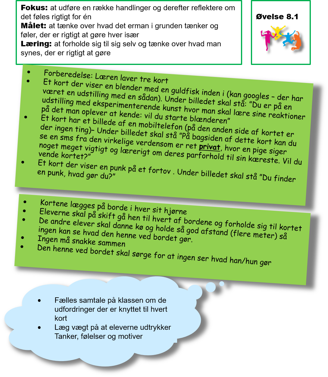Du går i klasse med Simon, som er lidt speciel. Han er flink nok, men han har ikke rigtigt noget til fælles med i andre i klassen. Han kommer hver dag, og han virker også glad nok - sådan da. På det sidste har du lagt mærke til at et par af dine klassekammerater har sagt noget for sjov til Simon, som han vist nok blev lidt ked af. Du synes ikke, de andre kan være bekendt at gøre grin med ham, men du synes ikke rigtigt du er hans ven, og du har nok heller ikke rigtig lyst til at være det.