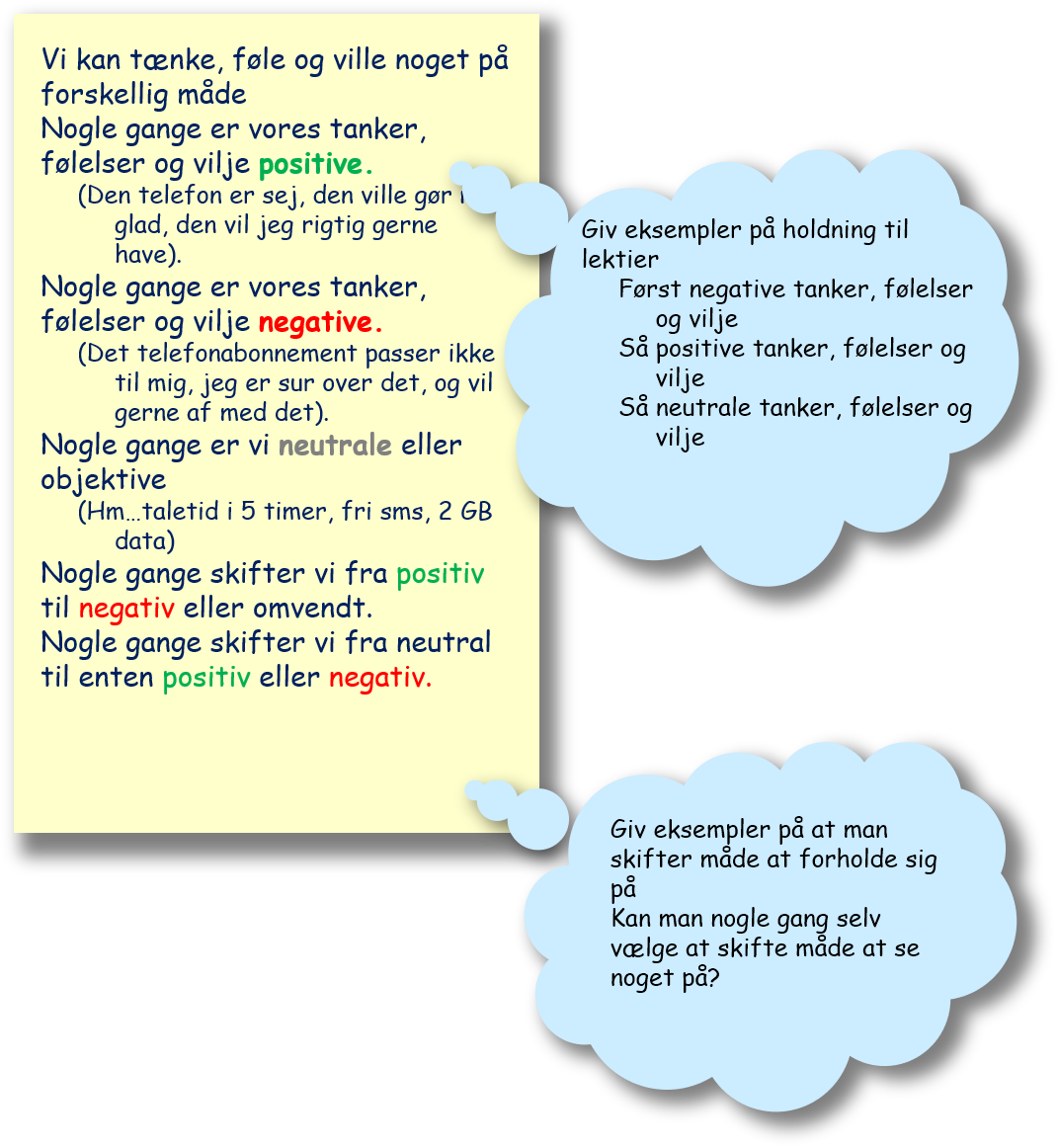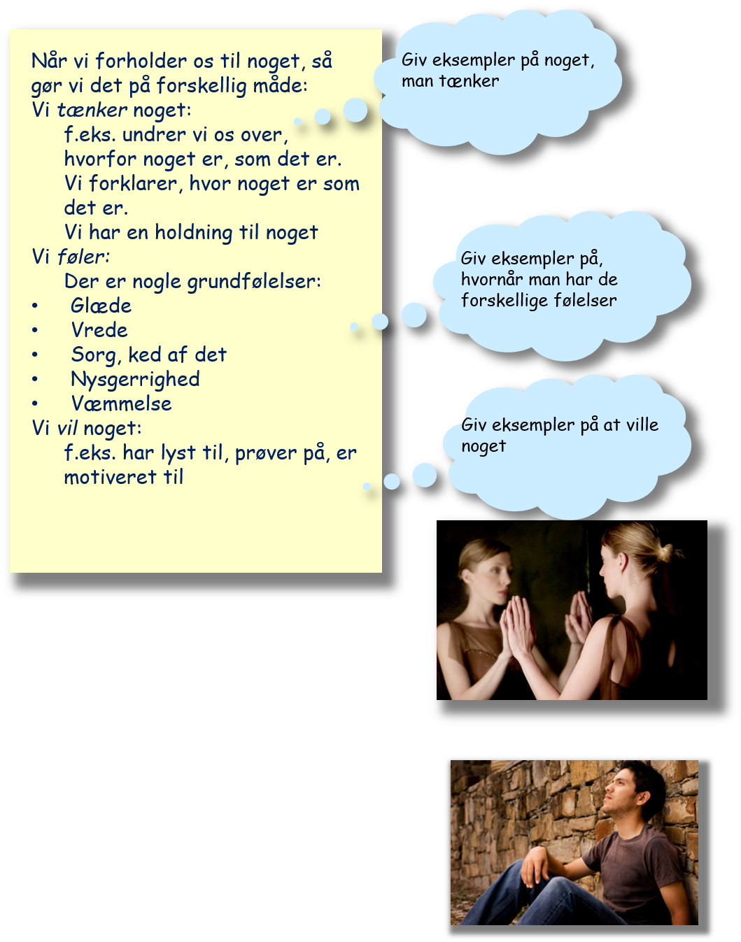 Hvilke handlemuligheder har du? Hvad tænker, føler og vil du?