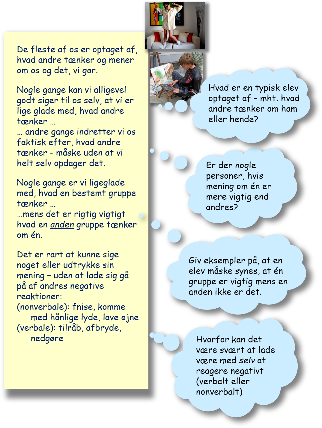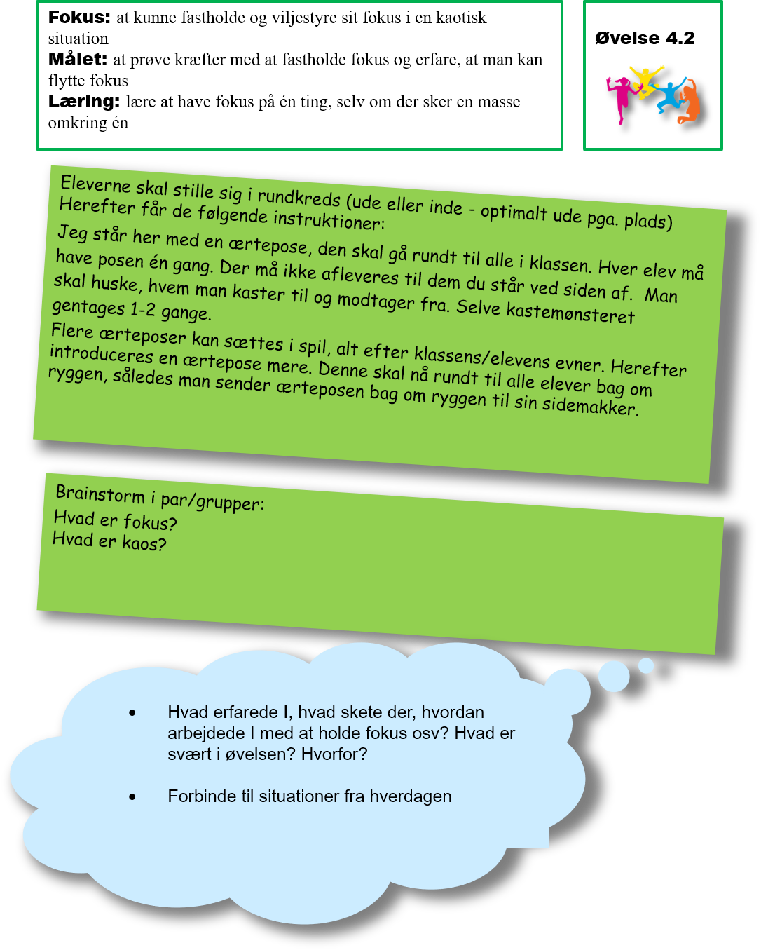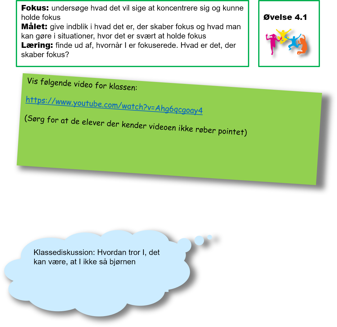 Start med at introducere kompetencen til eleverne. Brug de blå "skyer" som inspiration til klassediskussion. Vælg dernæst en eller flere øvelser som klassen kan lave.